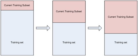 This approach involves training with a growing subset of the training set; this subset will increase with a fixed percentage each time training has completed (stopping conditions for the neural network have been met). This carries on until the training data set contains all the training patterns.