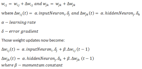 The momentum formula’s shown above are also known as the generalized delta rule.
