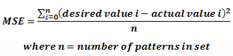 • Training Set Mean Squared Error (MSE) – this is the average of the sum of the squared errors (desired – actual) for each pattern in the training set. This gives a more detailed measure of the current networks accuracy, the smaller the MSE the better the network performs.